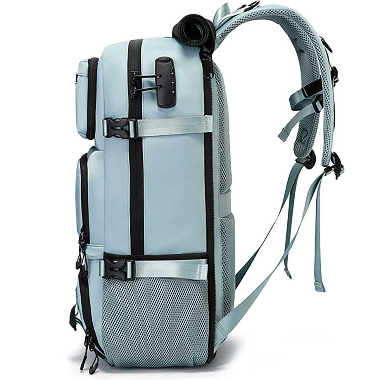 این کوله پشتی از پلیاستر باکیفیت و طراحی ضدسرقت برای امنیت بیشتر ساخته شده است. ویژگیهای آن شامل زیپ باکیفیت، دسته نرم، و جیب کناری قابل تنظیم برای راحتی بیشتر میشود. با توجه به جنس آن که پارچه پلیاستر نایلونی آکسفورد می باشد ، این کولهپشتی دوام فوقالعاده ای در برابر آب را ارائه میدهد و از وسایل شما در برابر باران، گرد و خاک و خط و خش بهطور مطمئن محافظت میکند. این کیف همچنین دارای قلاب شانه برای عینک آفتابی، بند مخصوص برای قرارگیری روی چمدان، و قفل ترکیبی امنیتی است که اطمینان میدهد وسایل شما ایمن و در دسترس هستند. علاوه بر این، کیف بند جداشونده نیز برای انعطافپذیری بیشتر ارائه شده است، که این کولهپشتی را برای استفاده روزمره و مسافرت ایدهآل میکند.